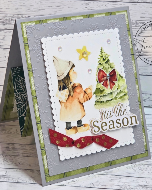 My inspiration for today’s project came from fun pop-up card Tina featured on her blog on November 20, 2025 (serenestamper.com). In addition to the measurements for the pieces she used, she also provided a link to a video tutorial. I challenged myself to use pieces from a kit to create an alternate fun fold card.